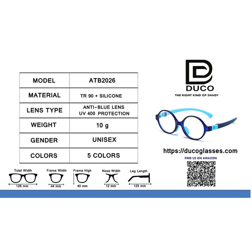 عینک بلوکات DUCO مخصوص کودکان، عینکی بسیار انعطاف‌پذیر و دارای لنزهای یو وی 400 فتوکرومیک، ترکیبی بی‌نظیر از فناوری پیشرفته و طراحی مدرن است که برای افرادی که به دنبال محافظت از چشمان کودکان خود در برابر نور آبی مضر و همچنین استایلی شیک هستند، ایده‌آل می‌باشد.