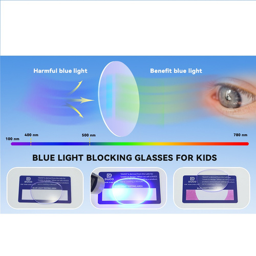 بنابراین عینک محافظ چشم Duco Kids دارای عدسی بلوکات بوده و پرتو های طیف ‌Blue Light را حذف میکند. این پرتو ها توسط نور های مصنوعی مانند لامپ و LED و صفحه های نمایش موبایل و کامپیوتر ایجاد شده و علاوه بر خستگی زود هنگام چشم موجب سردرد، اختلال در خواب، سوزش چشم و مشکلاتی دیگر میگردد.