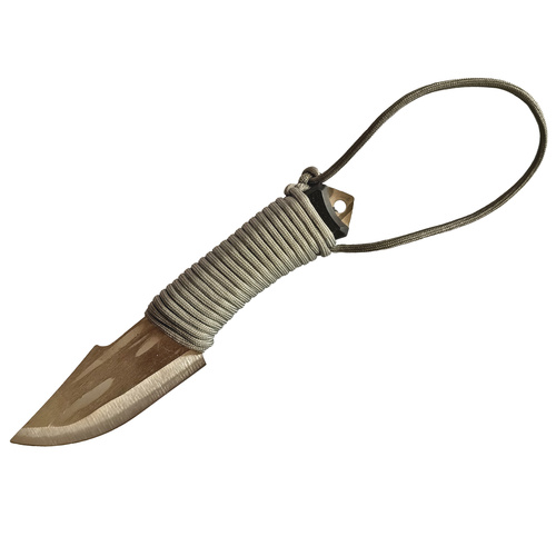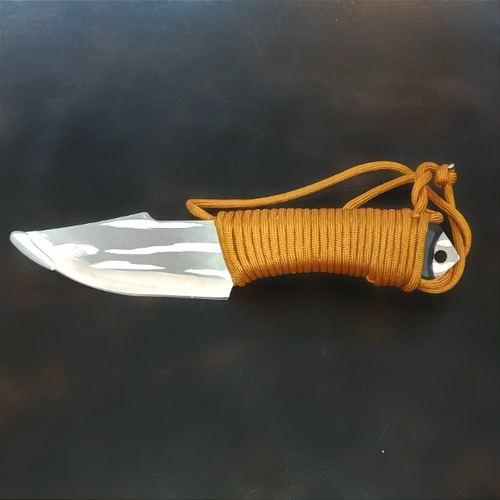 بنابراین پس هنگام استفاده از آن کاملا مراقب دستان خود باشید! برای لیز نخوردن از دست و استفاده راحت تر این چاقو در موقع استفاده، دسته چاقو با طناب مخصوص پاراکورد پیچیده شده که علاوه بر ظاهر زیبا و حرفه ای آن، حلقه ای برای آویز کردن چاقو به کمربند یا کیف سفر نیز بوجود آورده است. تنوع محصول بر اساس رنگ طناب پیچیده شده دور دسته آن رنگ بندی شده است که شما مطابق با سلیقه خود می توانید رنگ مد نظر را سفارش دهید.