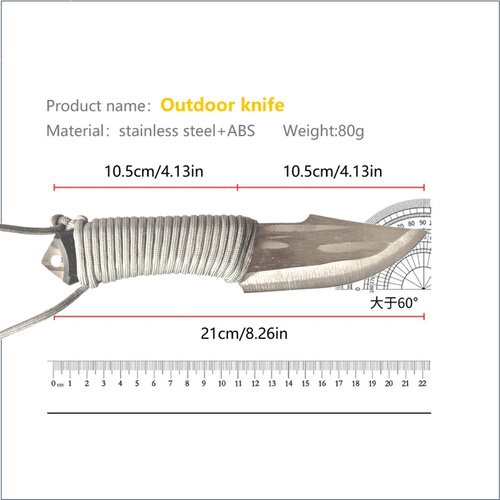 این چاقو تنها 21 سانت طول دارد. طول تیغه 11 سانتیمتر و طول دسته برابر10 سانتیمتر است که برای ایجاد تعادل وزنی و کنترل بهتر موقع کار با چاقو بسیاراهمیت دارد.در نتیجه این چاقو نسبتا جای کمی می گیرد و برای حمل و نقل بهتر آن، یک حلقه طناب پاراکورد برای بستن به کمر در آن ایجاد شده که حمل آن را آسان تر می کند. تنها یک اشاره برای بریدن گوشت یا مرغ یا هر نوع میوه و سبزی کافیست! چون به حد عالی تیز و ارگونومیک و راحت است.