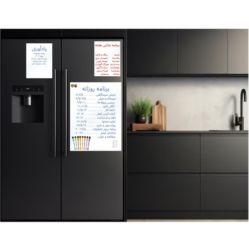 اقلام همراه۱ عدد ماژیک وایت برد ، ۲ عدد مگنت یخچالی ، ۱ عدد هولدر یخچالی