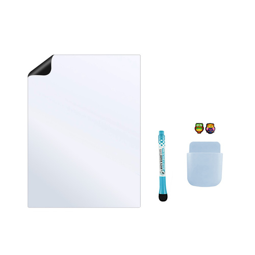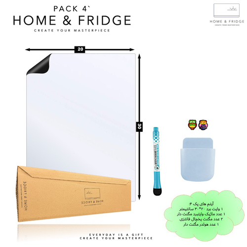 مجموعه وایت برد مغناطیسی انعطاف پذیر HOME & FRIDGE سایز 30 در 20 سانتی متر به همراه یک عدد ماژیک وایت بردی مخصوص مگنت دار و پک دو عددی استیکر مگنت رویخچالی و یک هولدر ارائه می گردد. شما با یک سفارش این مجموعه 5 عددی را دریافت می کنید. کاربرد این وایتبرد بسیار وسیع است و در خانه و آشپزخانه، مهدهای کودک، مدارس، ادارات و شرکت ها، جهت نوشتن و پاک کردن مداوم و استفاده دائمی در طولانی مدت طراحی شده است.