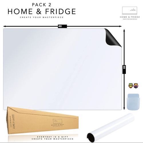 وایت برد مغناطیسی منعطف هوم اندفریج مدل رویخچالی طرح 2 سایز 40x30 سانتی متر به همراه هولدر مغناطیسی و مگنت یخچالی مجموعه 4 عددی