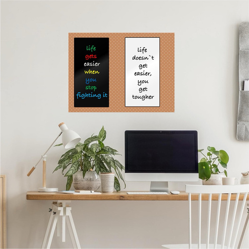 در نتیجه می توانید این وایت برد / بلک برد رو بدون نیاز به میخ و پیچ و چسب خیلی سریع و آسان به یخچال و سایر سطوح آهنی بچسبونید و از کار کردن باهاش لذت ببرید.حتی بچه ها هم میتوانند روی اون نقاشی بکشند و از کار کردن با اون لذت ببرند. ماژیک های مشکی این پکیج فقط مخصوص وایت برد است و روی بلک برد اثری ندارد. ابر جادویی موجود در این پکیج مخصوص پاک کردن رد به جا مانده از ماژیک ها و لکه های احتمالی به جا مانده است و برای پاک کردن نوشته ها و جوهر نوشتار، از دستمال و ابر انتهای ماژیک ها باید استفاده گردد.