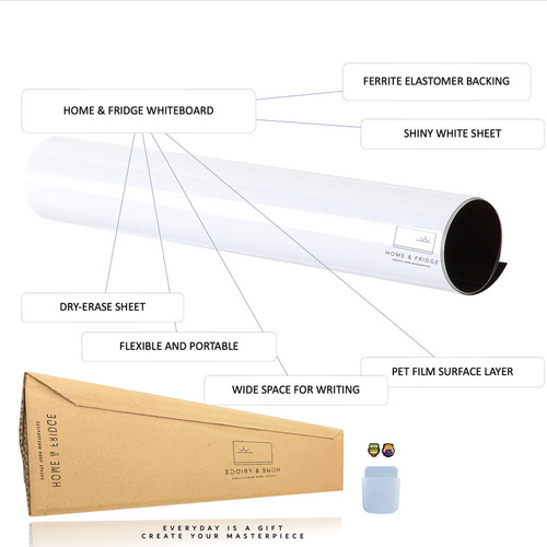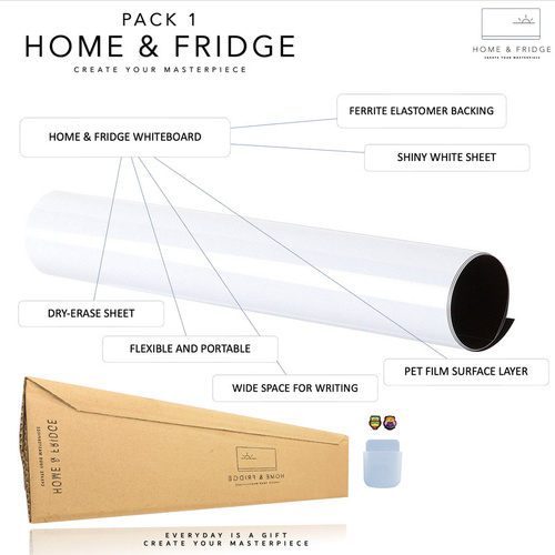 تخته وایت برد مغناطیسی انعطاف پذیر HOME & FRIDGE به همراه هولدر و پک دو عددی مگنت رویخچالی ارائه می گردد. کاربرد این وایت برد بسیار وسیع است و در خانه و آشپزخانه، مهدهای کودک، مدارس، ادارات و شرکت ها، جهت نوشتن و پاک کردن مداوم و استفاده دائمی در طولانی مدت طراحی شده است. هم چنین برای فعالیت های آموزشی داخل خانه و یا نقاشی کودکان نیز فوق العاده است. طراحی منحصر به فرد این محصول با رویکرد مینیمال در عین سادگی با دقت انجام شده است. دیگر نگران فراموش کردن امور روزمره و کارهایتان نباشید؛ میتوانید از این وایت برد برای برنامه ریزی کارهای روزانه، هفتگی و یا حتی ماهانه استفاده کنید.