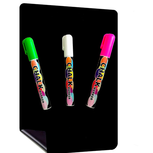 همراه این وایت برد سه عدد ماژیک گچ مایع هست.لطفا به نحوه استفاده از ماژیکها در عکس سوم دقت کنید.پیش از هربار استفاده ماژیکها را بخوبی تکان دهید. این ماژیک ها بر پایه آب هستن و هیچ ضرری ندارن.میتونید از اونها برای نقاشی و نوشتن روی انواع سطوح صاف مثل شیشه و آینه،بدنه و شیشه خودرو،نقاشی روی صورت کودکان و ناخن ها و... استفاده کرد.