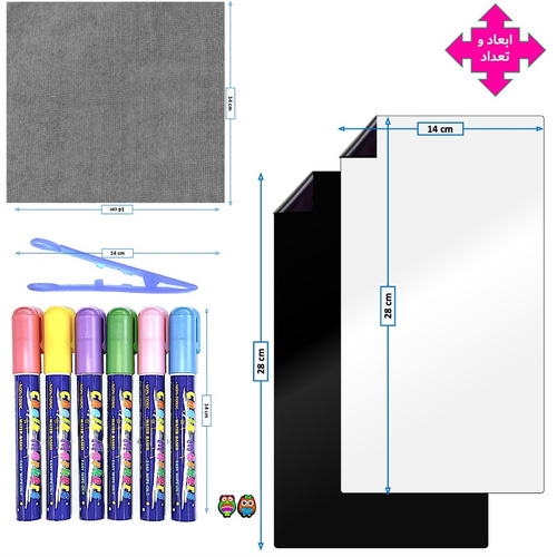 ❊❊روکش ورق بلک برد از PET است که به راحتی با آب یا دستمال خیس تمامی نوشته ها شستشو داده شده و بدون رد و اثر روی ورق، پاک می کند.