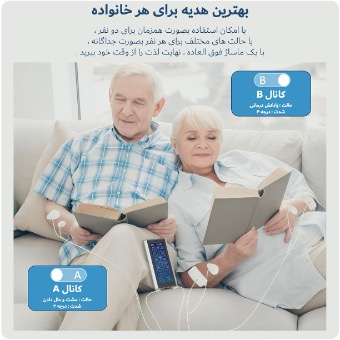 2. پدها را روی محلی که نیاز به ماساژ دارید قرار دهید(برای نتیجه بهتر پدها را به نقاط مشخص شده در جدول ضمیمه متصل نمایید)، سپس سر دیگر آن را به یکی از پورتهای(AیاB) دستگاه وصل کنیدزیر دستگاه.