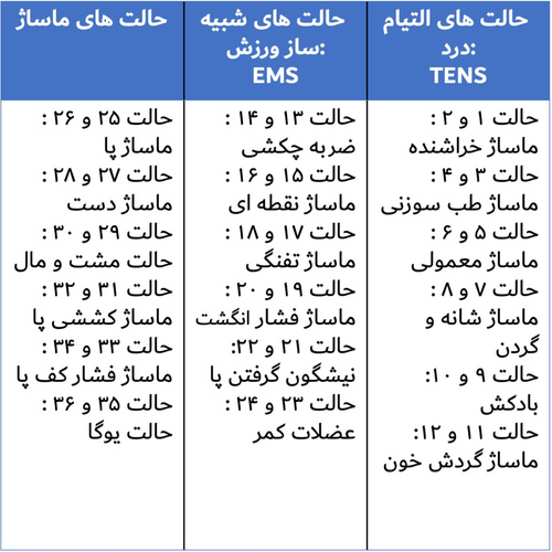 36 برنامه ماساژ درمانی با تحریک الکتریکی عصب ها از طریق پوست