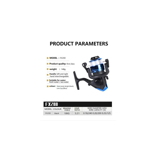چرخ ماهیگیری مدل بیسیک برند FX-200 به همراه 50 متر نخ پیچیده شده آماده