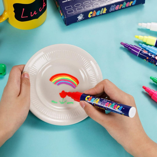 در نتیجه به راحتی با آب شسته می شوند و شما برای پاک کردن آنها از سطوح LED, شیشه ای یا وایت برد و پلکسی تنها به آب و دستمال خیس نیاز دارید. کار کردن با ماژیک های گچی Duole، بر روی سطوح مختلف، تجربه ای متفاوت و خلاقانه را در اختیار کودکان و سایر کاربران این محصول قرار می دهد. این ماژیک کاملا بدون بو و بدون حساسیت و برای استفاده کودکان کاملا بی خطرمی باشد و گزینه مناسب و جذابی برای ایجاد علاقه به نقاشی در کودکان می تواند باشد.