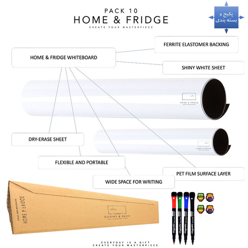 وایت برد مغناطیسی منعطف هوم اندفریج مدل رویخچالی طرح TWIN A2 سایز 60x40 سانتیمتر به همراه ماژیک و مگنت مجموعه 10 عددی