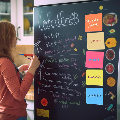 علاوه بر این می توانید برای اعضای خانواده خود بر روی یخچال، لباسشویی، ظرفشویی و ماکروویو یادداشت هایی بنویسید و مثلا نیاز به شستشوی لباسها، زمان گرم کردن غذا، لیست خرید روزانه، محتویات یخچال و ... را بدون نیاز به گشتن به دنبال کاغذ یادداشت به اطلاع سایر افراد برسانید. قابلیت استفاده مجدد این استیکرهای مغناطیسی و سازگار بودن با محیط زیست که باعث کمتر مصرف شدن کاغذ می شود، این استیکرهای شیک را تبدیل به ابزاری اقتصادی و دوستدار طبیعت نموده است.